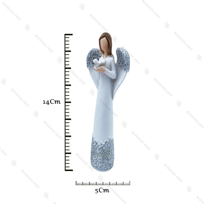 | سایر مشخصات | بال بزرگ سفید نقره ای, دامن نقره ای, موهای قهوه ای, لباس سفید, دارای پرنده سفید در دست, مناسب برای هدیه دادن, دارای جعبه |
