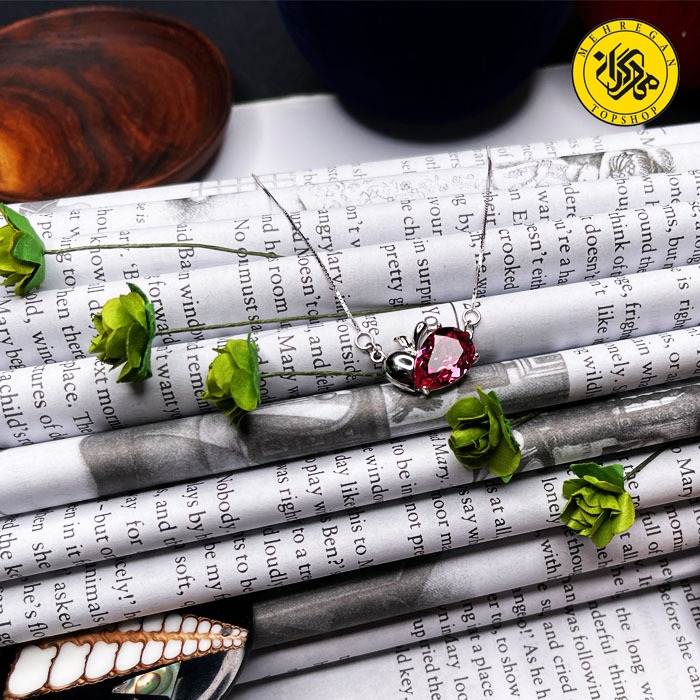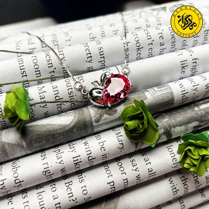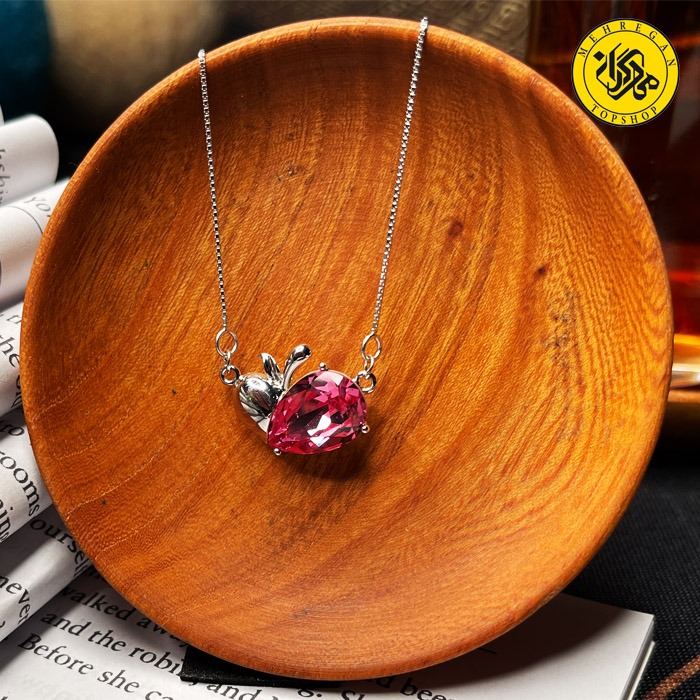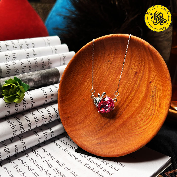 گردنبند نقره زنانه طرح سیب و سنگ اشکی 3.88 گرمی بنفش