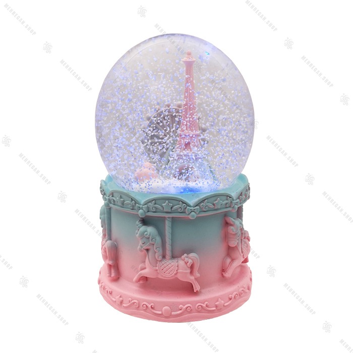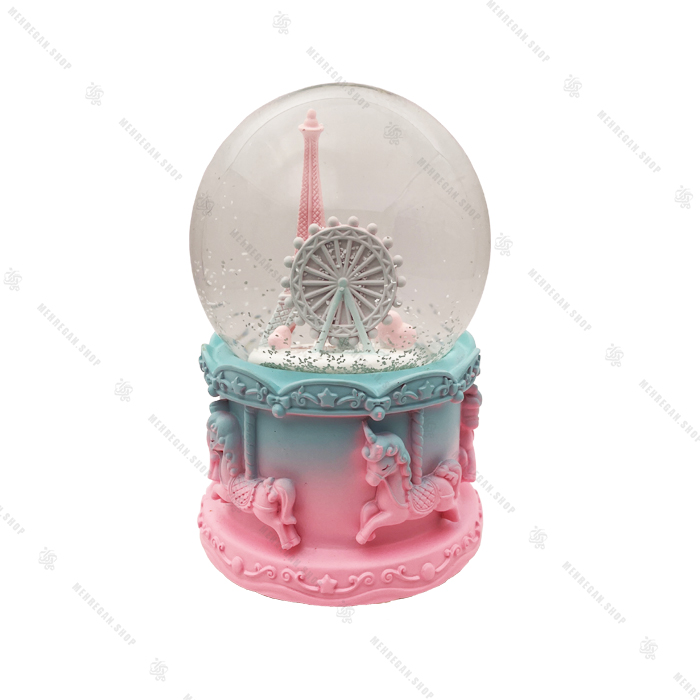 سایر مشخصات | برج ایفل و چرخ فلک معروف لندن, دارای پایه صورتی و آبی کمرنگ با اسب های برجسته شهر بازی, باطری خور, دارای پمپ گردش برف اتومات داخل گوی |