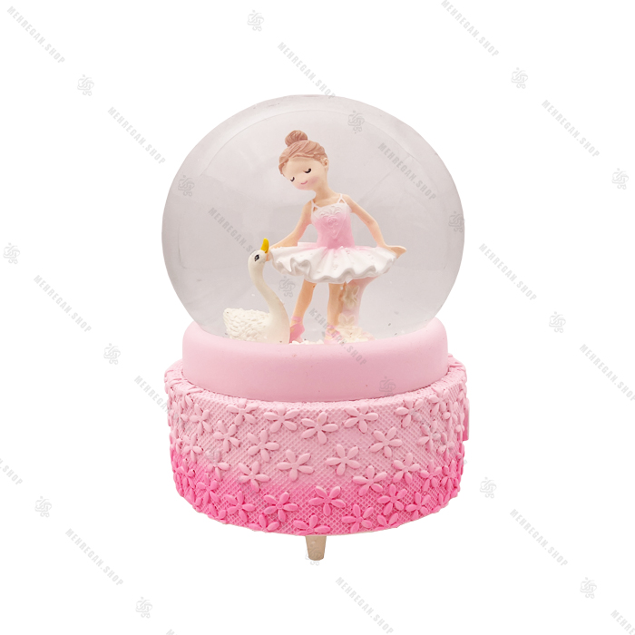 | سایر مشخصات | مجسمه پرنسس و قو با کیفیت, دارای پایه صورتی رنگ با گل های کوچک برجسته, باطری خور, دارای پمپ گردش برف اتومات داخل گوی |