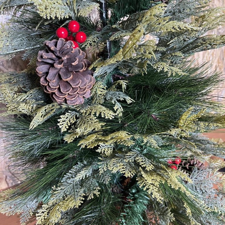 | توضیحات | مدل درخت کاج, تزیین شده با کاج و دانه های قرمز |